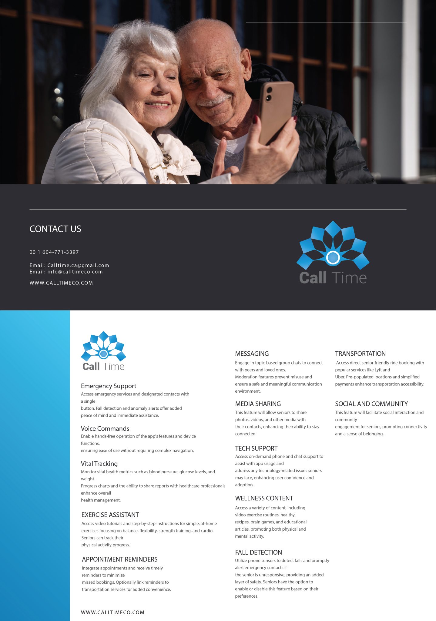 With video and voice call features, seniors can easily connect with their loved ones and receive the technical support they need also many seniors have difficulty traveling or leaving their homes, so offering an easy-to-use video chat feature can help them stay in touch with friends and family.